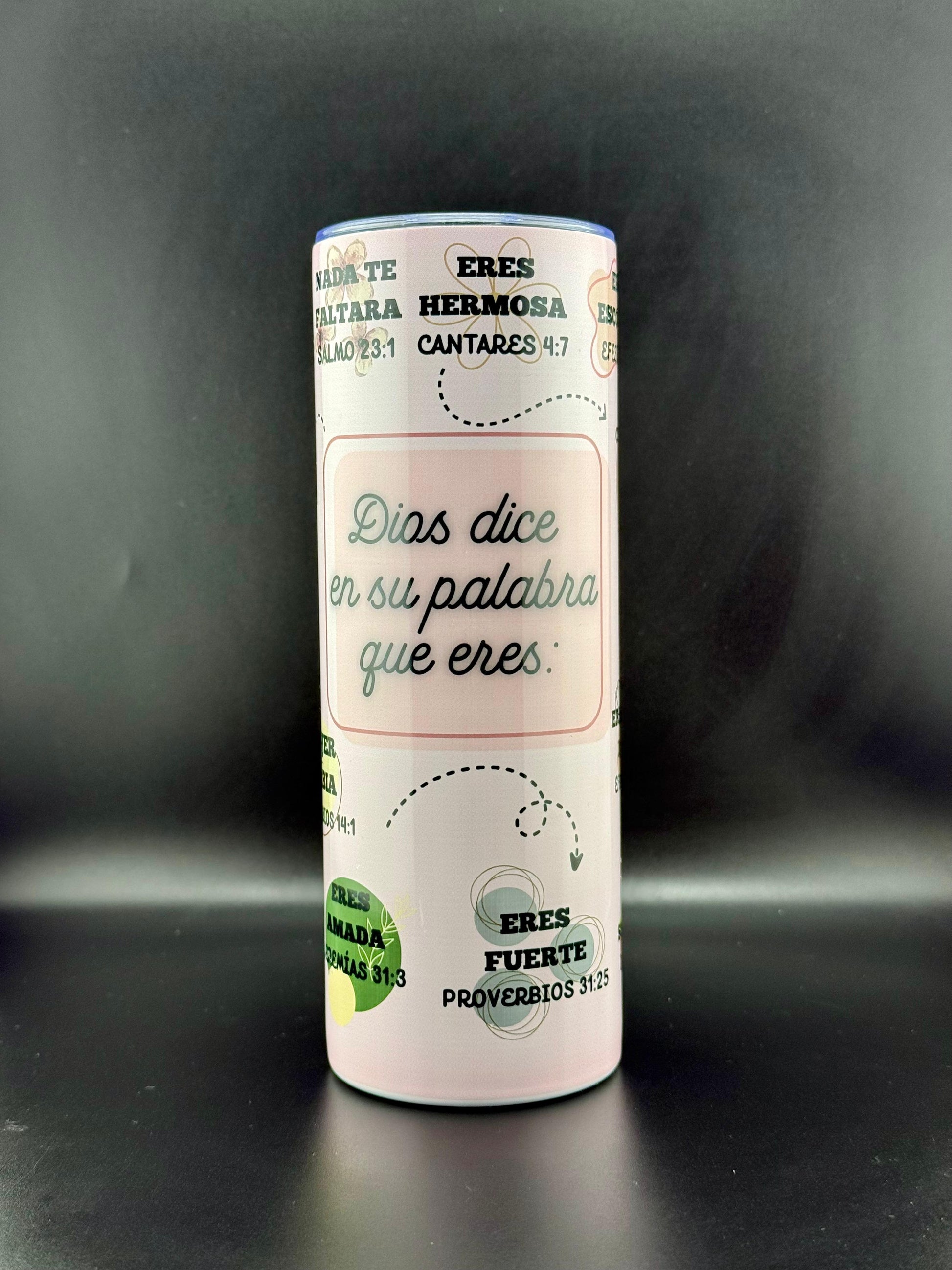 Descubre este hermoso vaso cristiano diseñado especialmente para recordarte cada día lo que Dios dice de ti en Su Palabra. 🌈✨