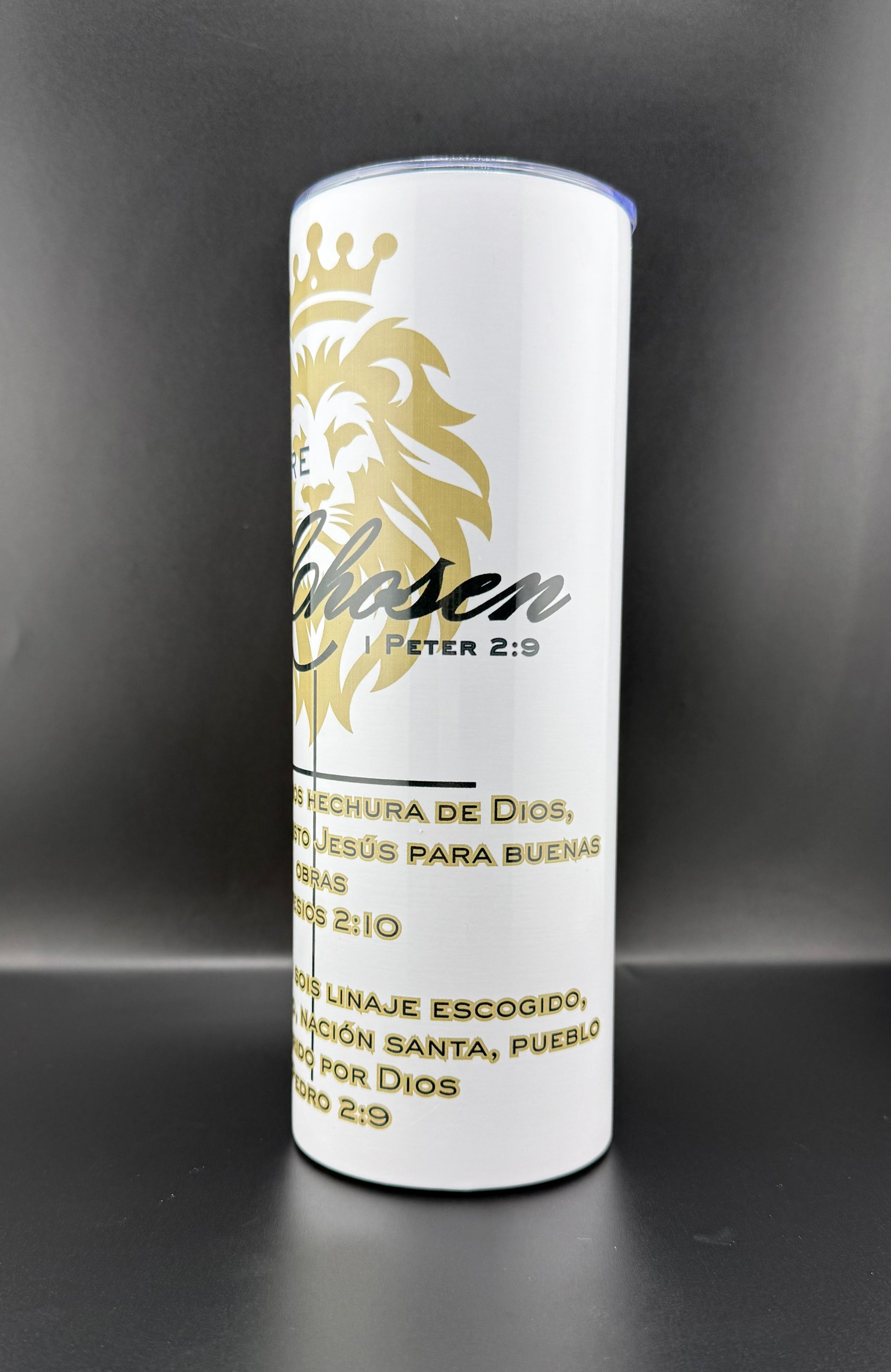 Este hermoso tumbler cristiano “You Are Chosen” es un recordatorio poderoso de que Dios te escogió con un propósito. Inspirado en 1 Pedro 2:9 y Efesios 2:10, este diseño combina elegancia, fe y excelencia.