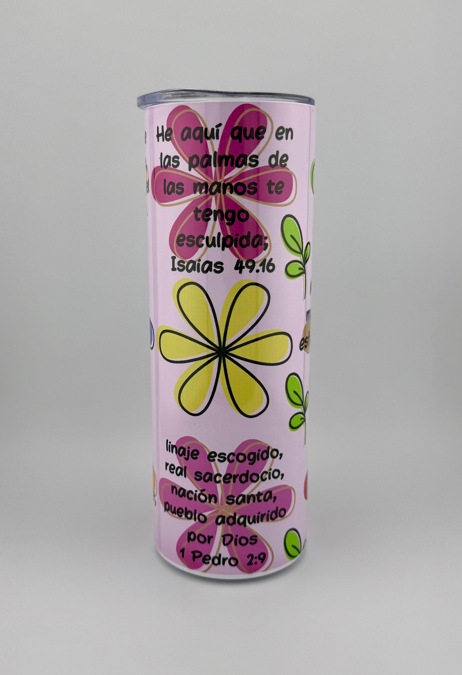 Un vaso que combina belleza y fe, pensado como un regalo especial para mujeres cristianas o como un accesorio inspirador para tu día a día.